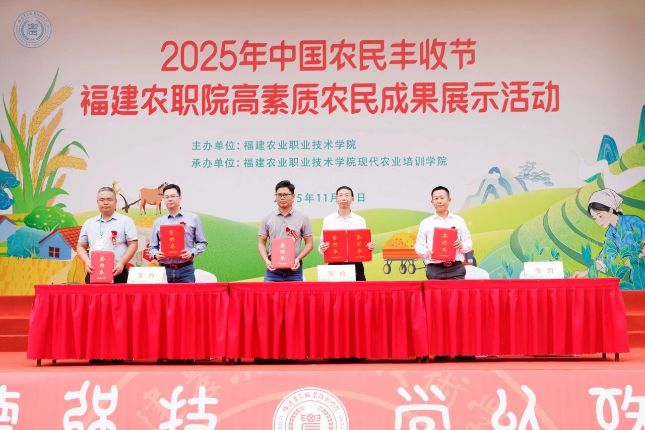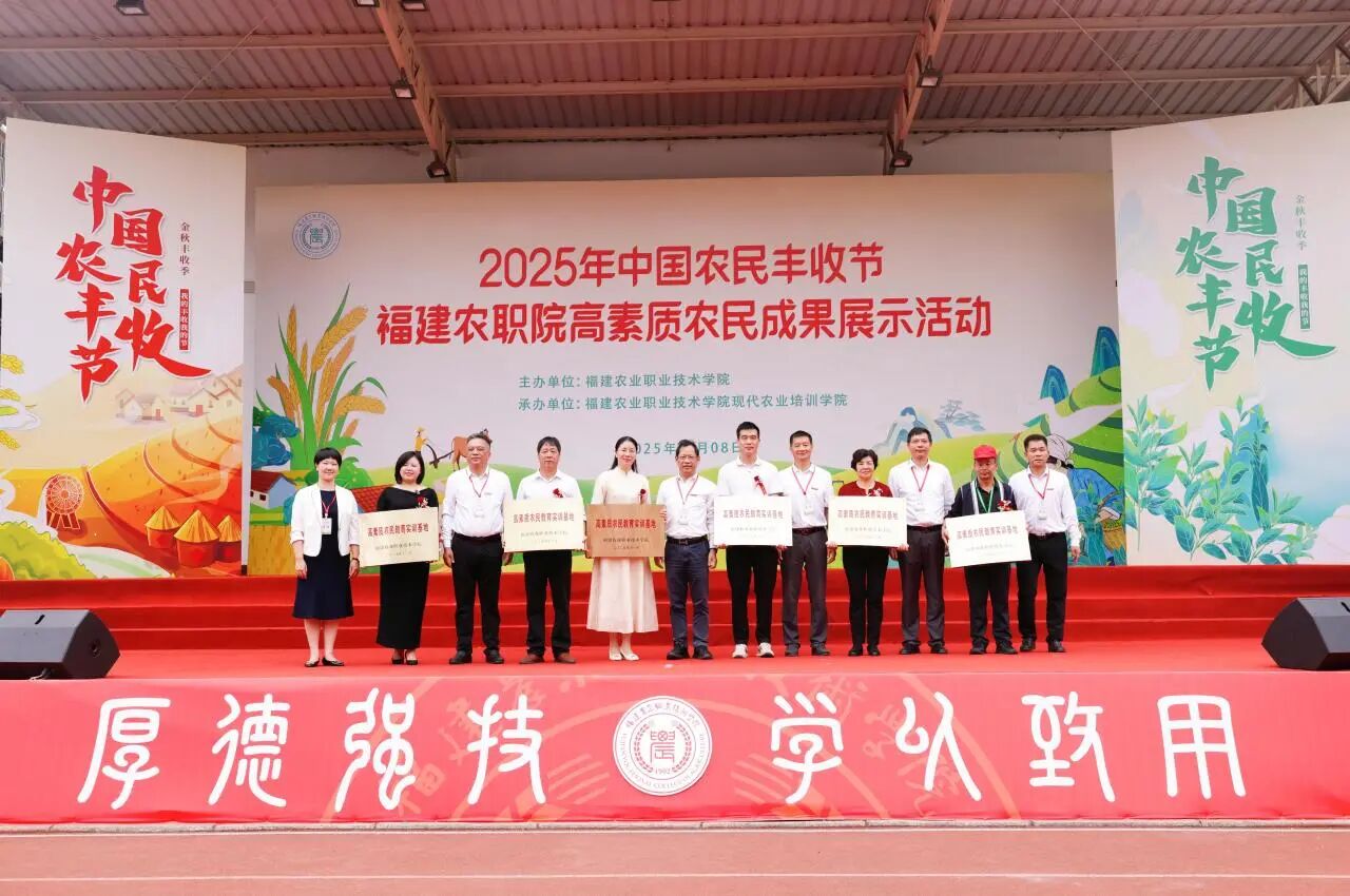 11月8日上午,2025年中国农民丰收节福建农业职业技术学院高素质农民成果展示活动在学院首山校区田径场隆重举行。省人大农业农村委主任委员黄华康、省人大教科文卫委主任委员张天明、省农业农村厅二级巡视员陈洪、省农业科学院党委委员、副院长丁中文、省人大农经委原正厅级副主任、省茶叶学会名誉会长冯廷佺、省供销社原一级巡视员林勤、省农业农村厅原副巡视员、省茶叶学会副会长邹荣贵、省农业农村厅原二级巡视员、省畜牧兽医学会副理事长林加土、省农学会副会长叶夏、学院领导班子及百余名高素质农民学员们参加本次活动。