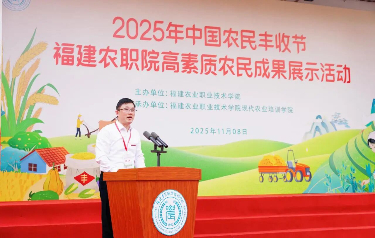 福建省农业农村厅二级巡视员陈洪对学院办学成果予以高度肯定。他指出,福建农业职业技术学院创新构建校地协同、产教融合的育人机制,通过举办高素质农民学员能力提升成果展示等特色活动,生动展现了我省农业农村现代化建设的良好态势。