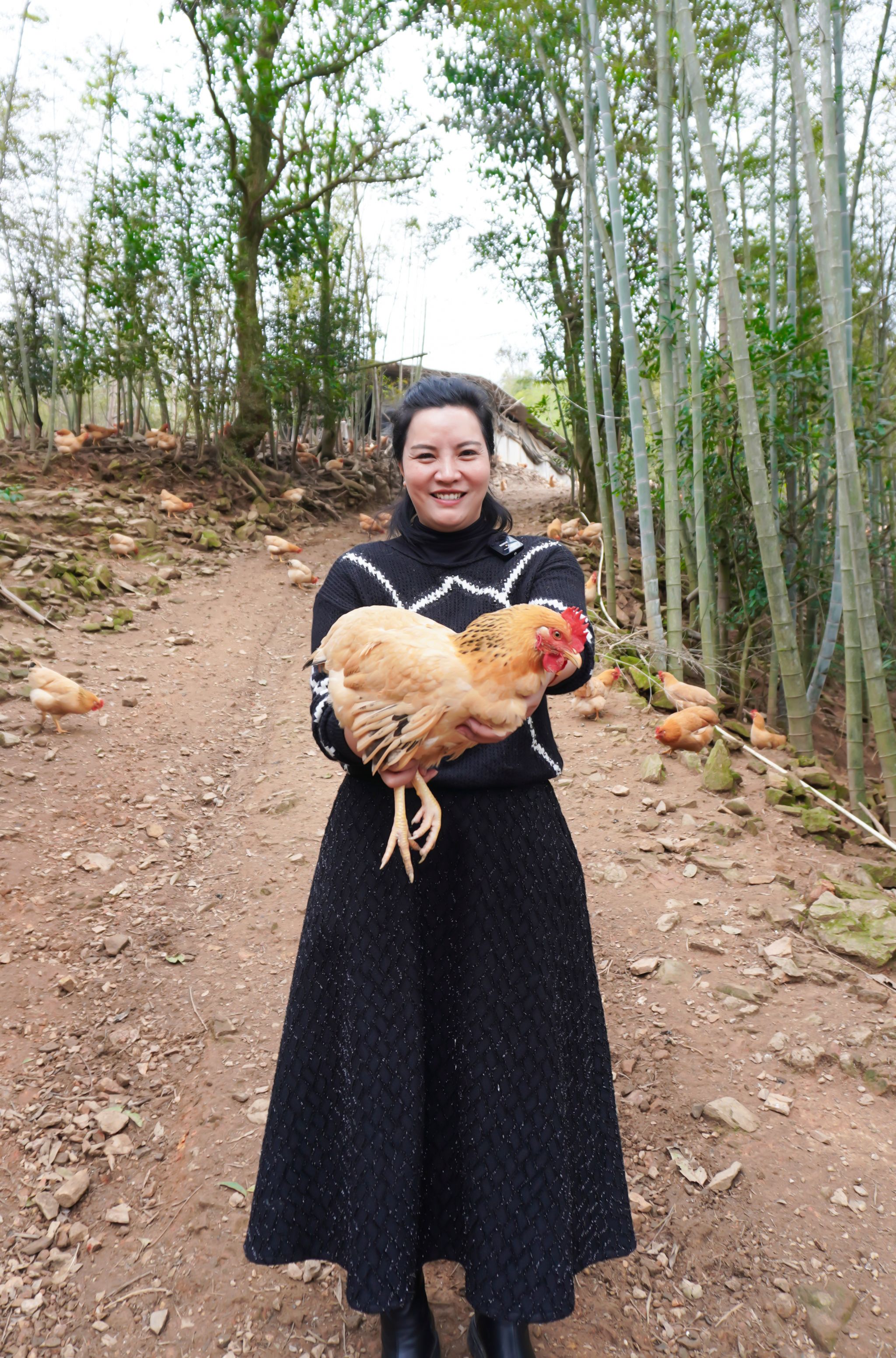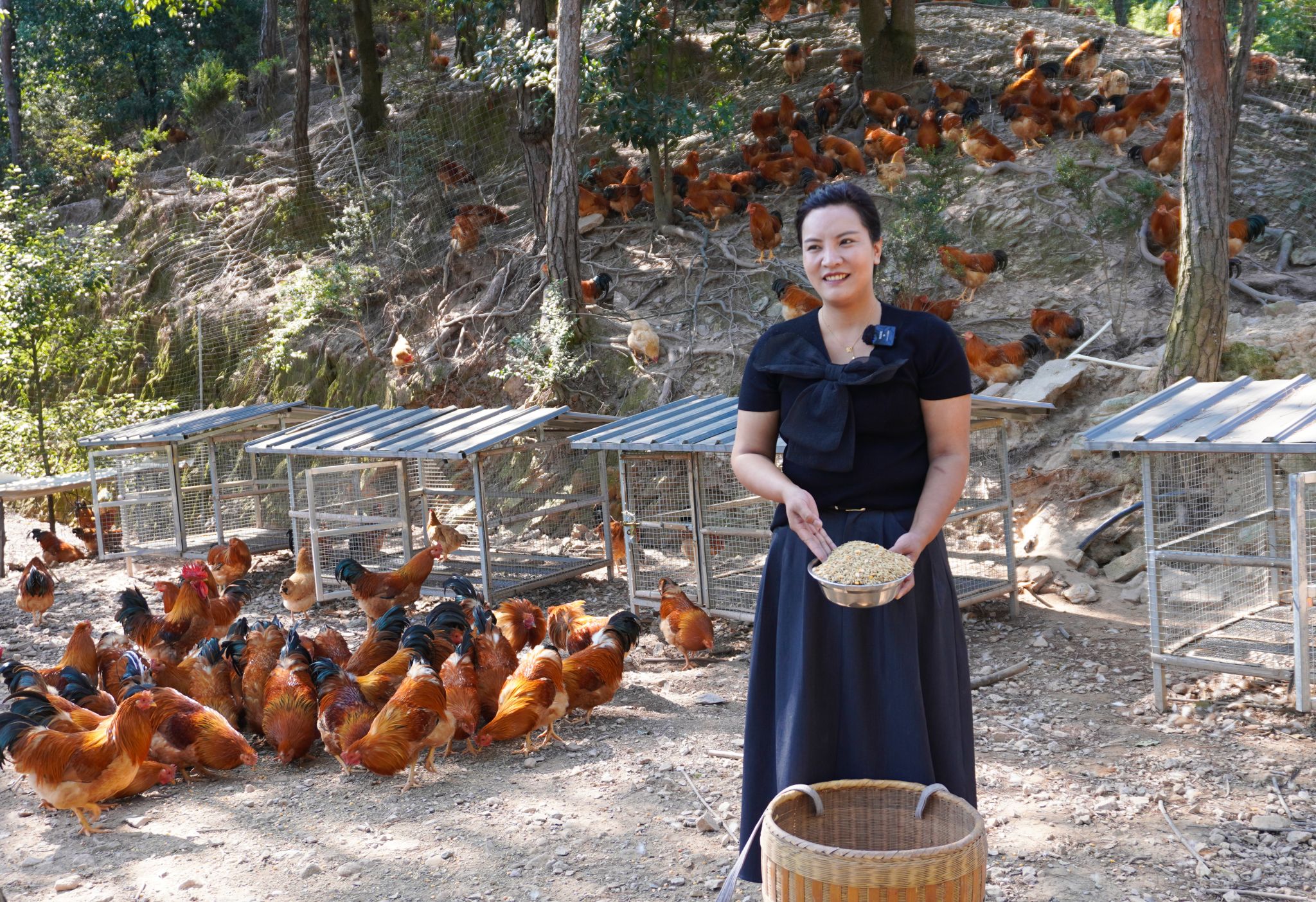 杨浏锭的人生轨迹,藏着敢闯敢试的勇气。大学毕业后,她闯荡商海,在工程、贸易领域斩获第一桶金,成为名副其实的商界精英。一次在福州的打拼经历中,家乡的河田鸡在当地的火爆行情,唤醒了她心底的"家乡情",也让她看到了生态农业的巨大潜力。2017年,她毅然放弃城市的繁华,回到长汀县大同镇,创办了杨婆婆家庭农场,开启了生态河田鸡的养殖之路。